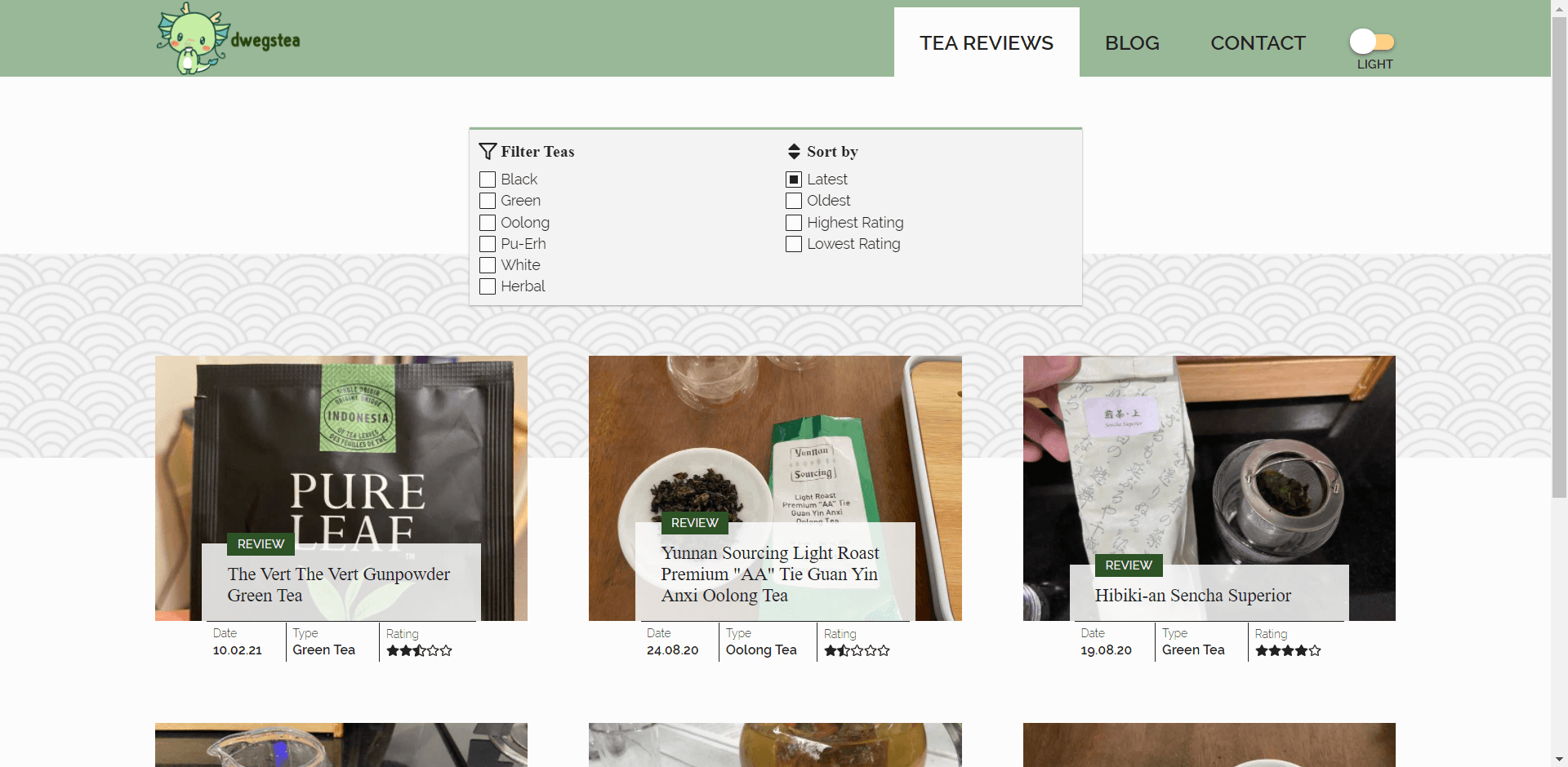 A tea blog for me to write tea reviews. Uses a 3rd party CMS (Contentful) to add content! Hobby project. Out of date.